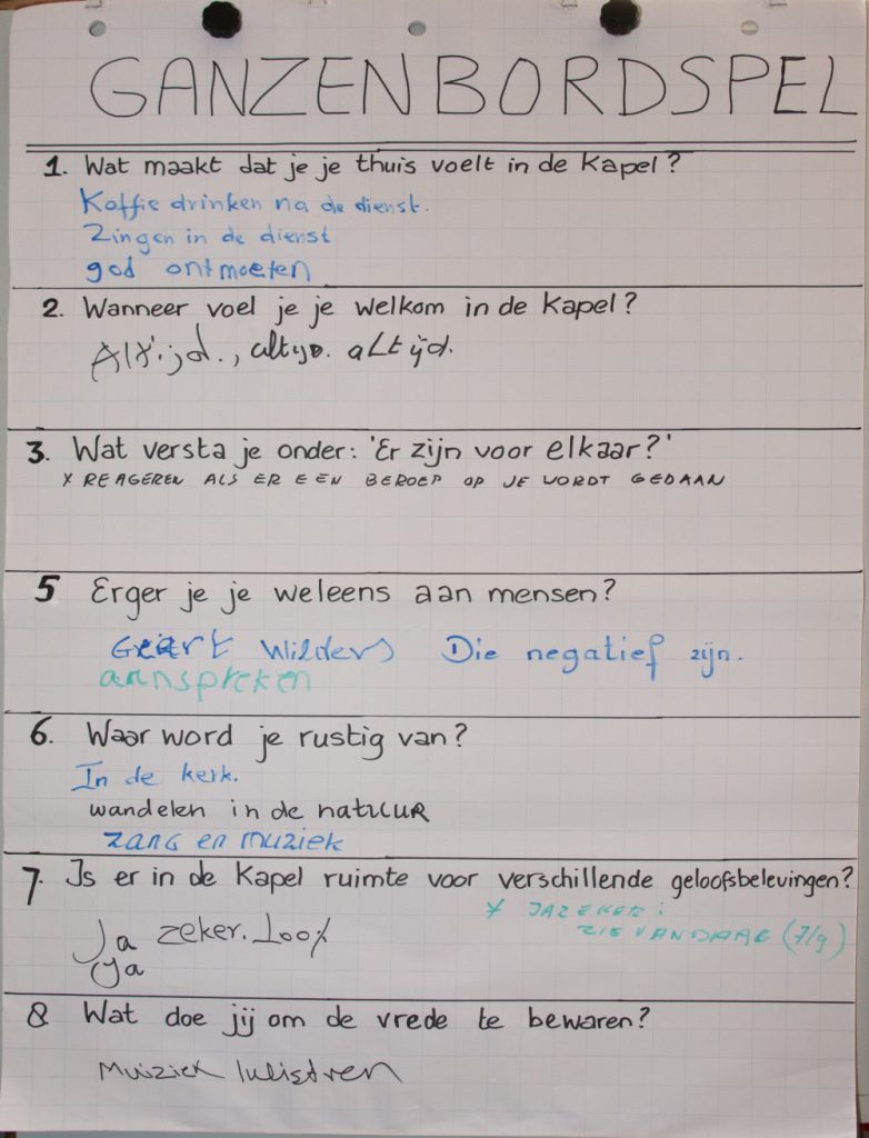 In de dienst waren er vanmorgen eerst nog wel wat vertrouwde onderdelen met samenzang, bemoediging en groet, gebed en een Bijbellezing. Maar daarna ging het er toch wel heel anders aan toe dan wat de kerkgangers (ook die van de Kapel) gewend zijn.