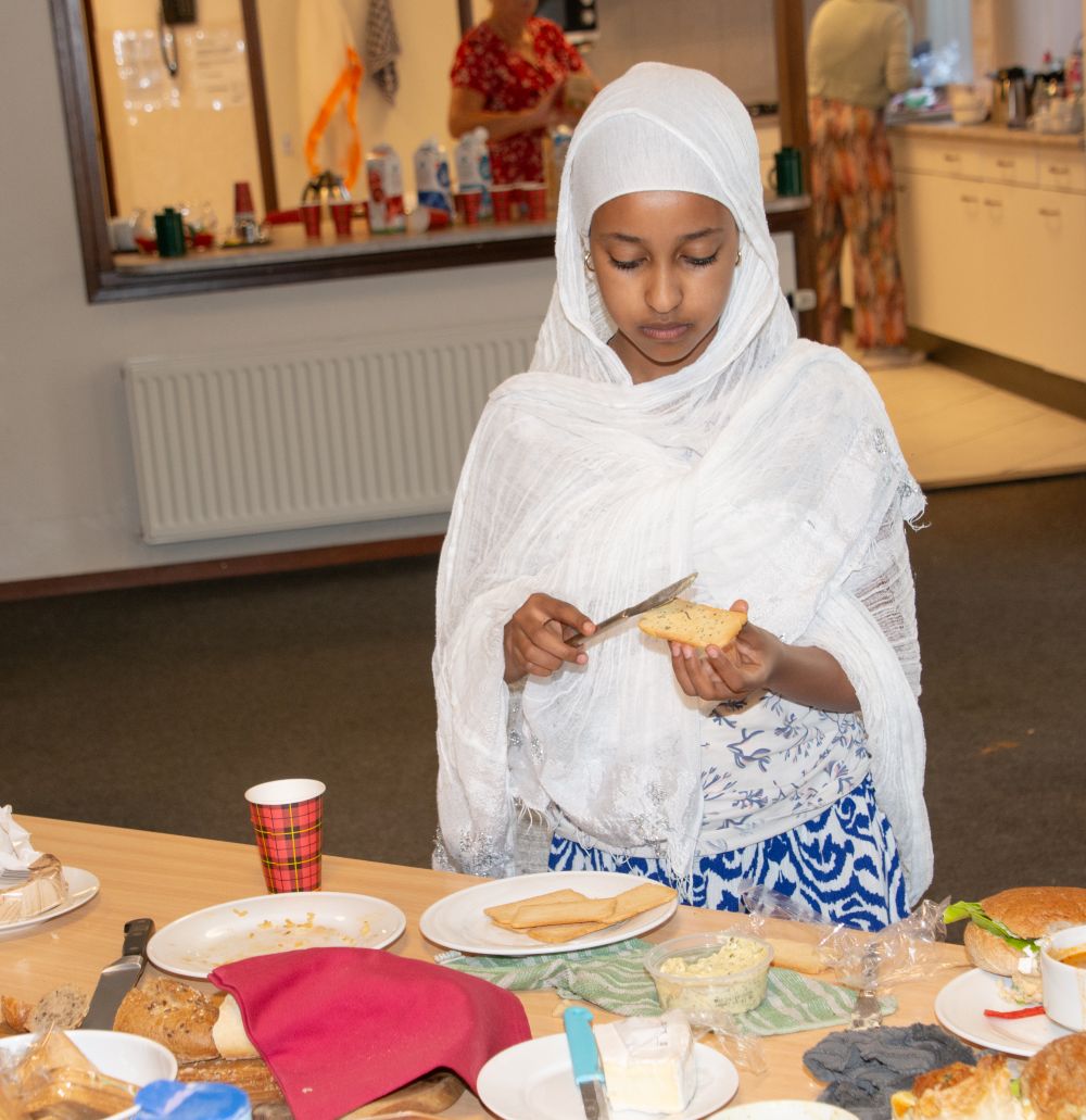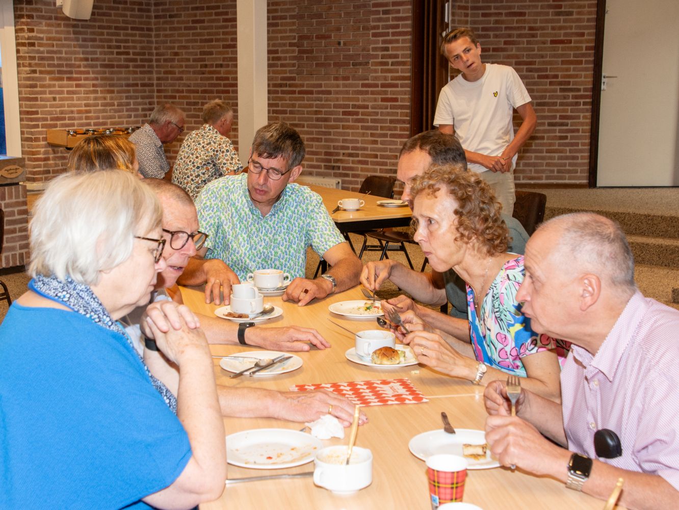 Bij terugkomst in de kerkzaal werd de dienst voortgezet met bekende liturgische elementen: gebed, collecte, samenzang en de zegen. Daarna was er de traditionele koffie en thee, met aansluitend de lunch met alle meegebrachte etenswaren. Ook de Eritrese gasten bleven tot het einde meedoen en meevieren.