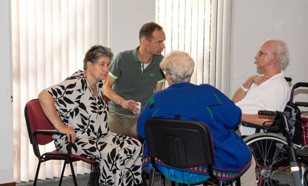 Op zondag 7 september werd in de Kapel de overgang van de zomerperiode naar het nieuwe winterseizoen op een bijzondere en feestelijke manier geaccentueerd. De aanvangstijd van de kerkdienst ging vandaag weer naar 10.00 uur. Bij binnenkomst in de kerkzaal werd meteen duidelijk: dit wordt een bijzondere bijeenkomst en zeker geen traditionele kerkdienst. Geen rijen met stoelen richting liturgisch centrum, maar stoelen rondom tafels gegroepeerd.