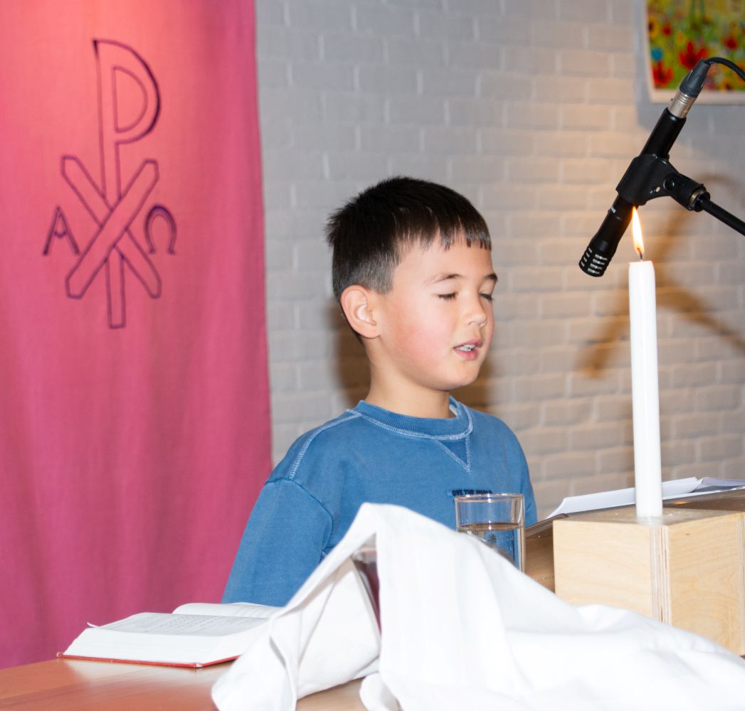 Vanmorgen zong de cantorij tijdens de dienst en werd ook de Maaltijd van de Heer gevierd. Natuurlijk was er weer aandacht voor het project van de kindernevendienst. De postbode kwam weer naar binnen met een pakje. Op de doos stond “geluk” en in het pakje bleek een mooie bloem te zitten. Bloemen kunnen mensen gelukkig, blij maken. Dit sloot prachtig aan bij de Bijbellezing uit Jesaja 35: