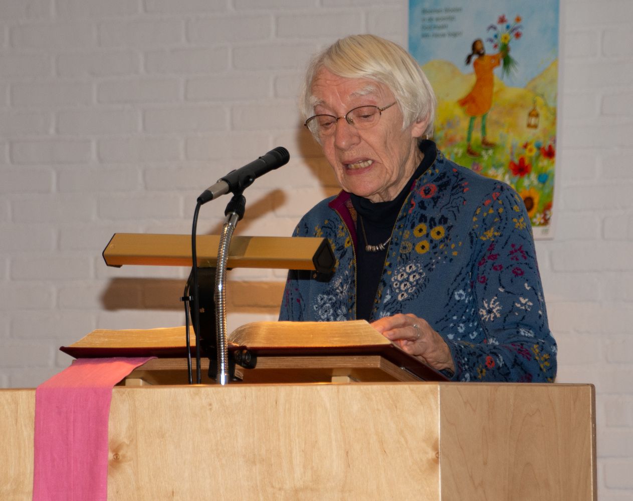 Uit het Nieuwe Testament werd een gedeelte gelezen van Matteüs. Ds. Benard typeerde tijdens de overdenking Johannes de Doper als “activistisch”, opkomend voor gerechtigheid en zich sterk afzettend tegen de misstanden om zich heen in die tijd. Het optreden van Jezus was zachtmoediger, al keerde ook hij zich tegen onrecht. Jezus probeerde zijn toehoorders en volgelingen een weg te wijzen naar Gods bedoeling en toekomst.
