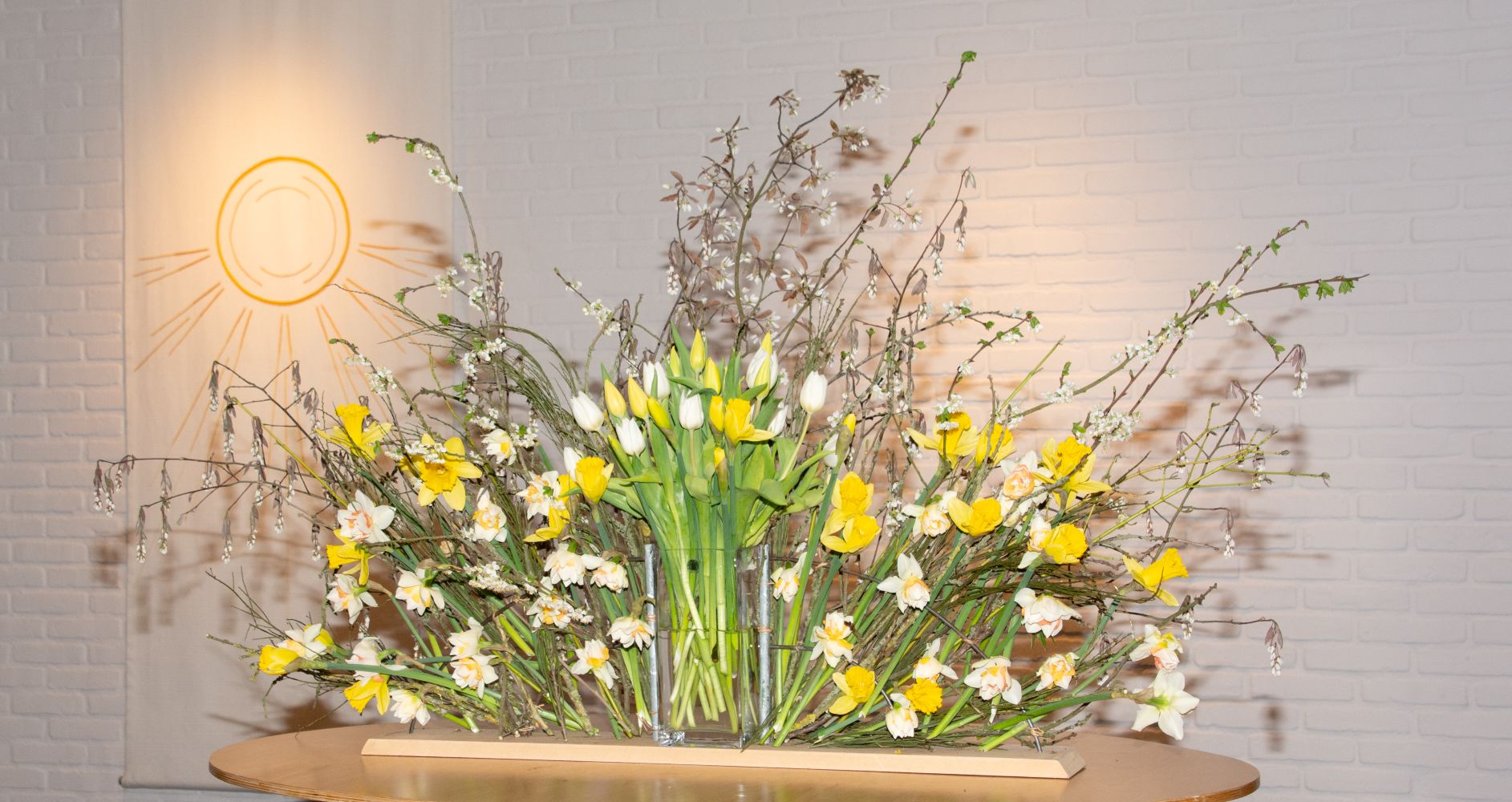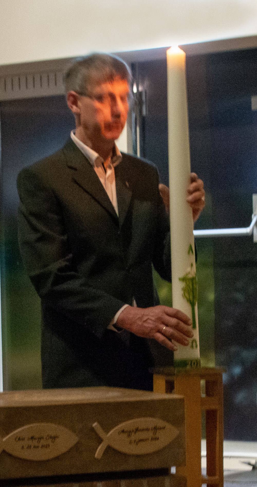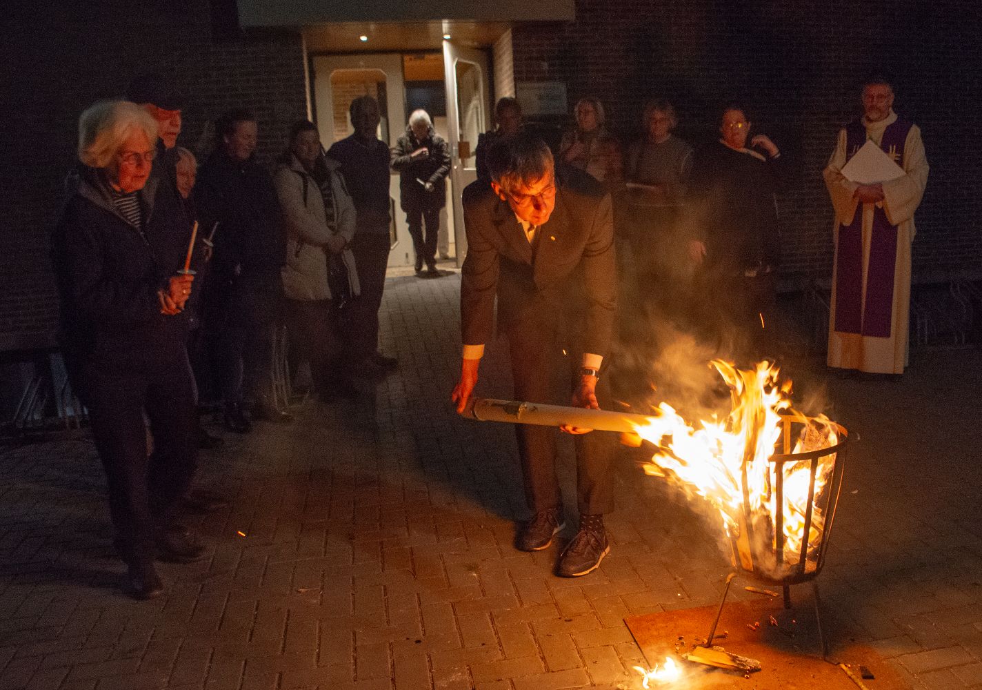 In de kerkzaal werd het licht van de Paaskaars gedeeld. Er werden vanavond oude verhalen gelezen van de schepping, de uittocht en van een nieuwe toekomst. Verhalen die uitliepen op het Evangelie van de Opstanding.