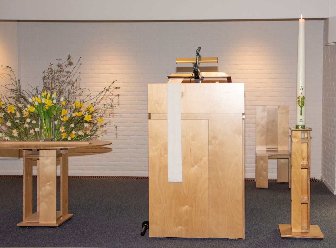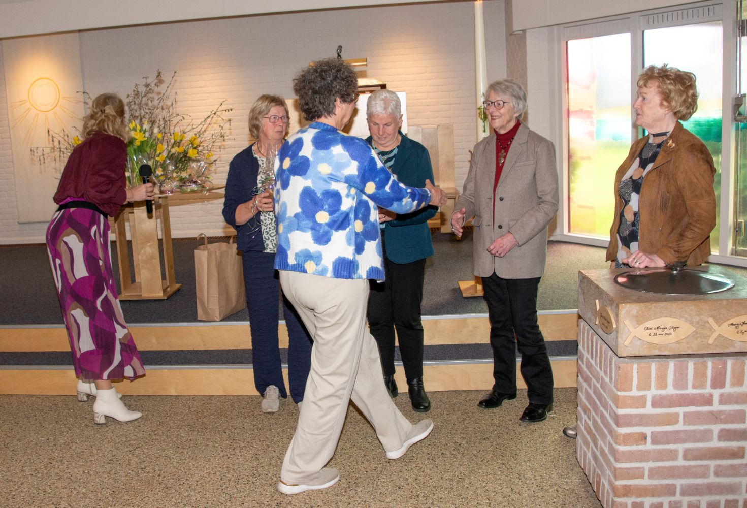 Aan het einde van de dienst was er aandacht voor de liturgische bloemschikgroep. Deze veertigdagentijd en Pasen was voor de groep de laatste cyclus, waarin zij liturgische schikkingen hebben gemaakt. De waardering voor hun bijzondere creatieve bijdragen tijdens vele diensten werd vanmorgen op verschillende manieren naar voren gebracht.
